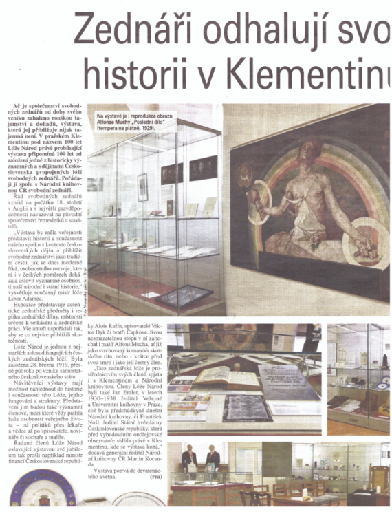On May 2, 2019, a whole page in Právo (a daily) was dedicated to an article about the 100 Years of the Národ Lodge exhibition in Klementinum. The article was issued in cooperation with Libor Adamec, the Immediate Past Master of the Národ Lodge. Libor Adamec also gave an interesting […]